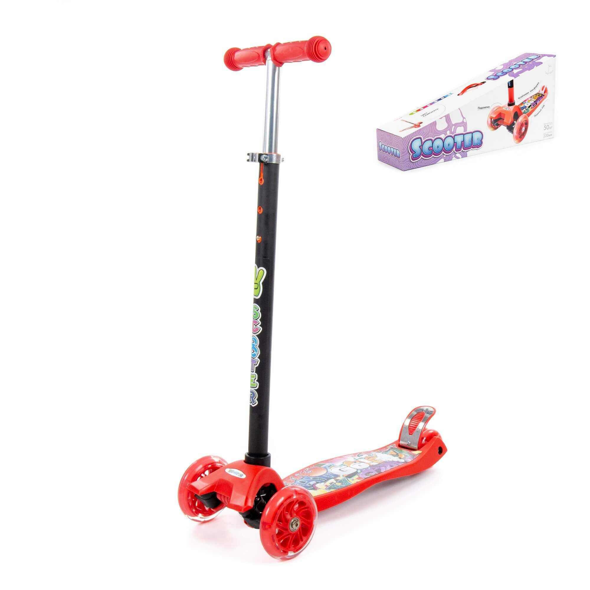 Самокат Полесье 0072C со складной ручкой, красно-чёрный