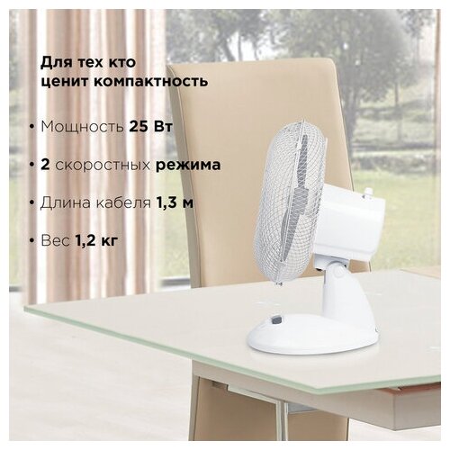 Вентилятор настольный SONNEN FT23-B6, d=23 см, 25 Вт, на подставке, 2 скоростных режима, белый/серый, 451038 Комплект : 1 шт .