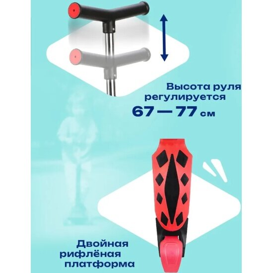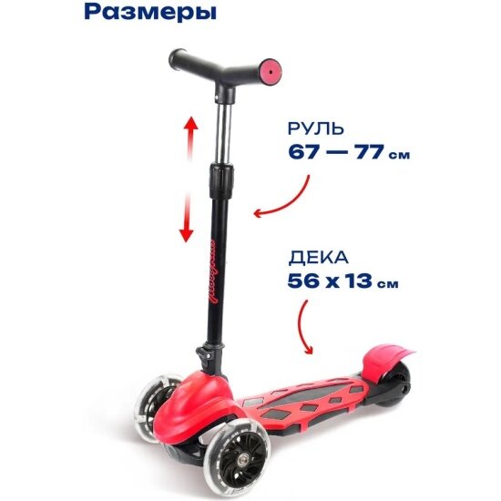 Самокат трехколесный "MobyKids" "Dragon" складной, 120 PVC, со светом (красный)