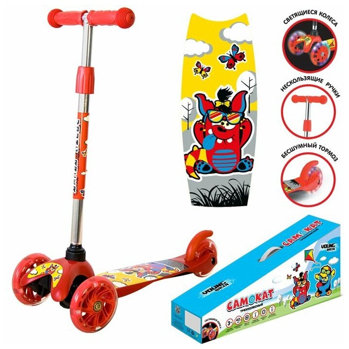 Самокат детский Young Racer 3-х колесный, красный 120 мм, свет, до 40 кг (А5-6-1)