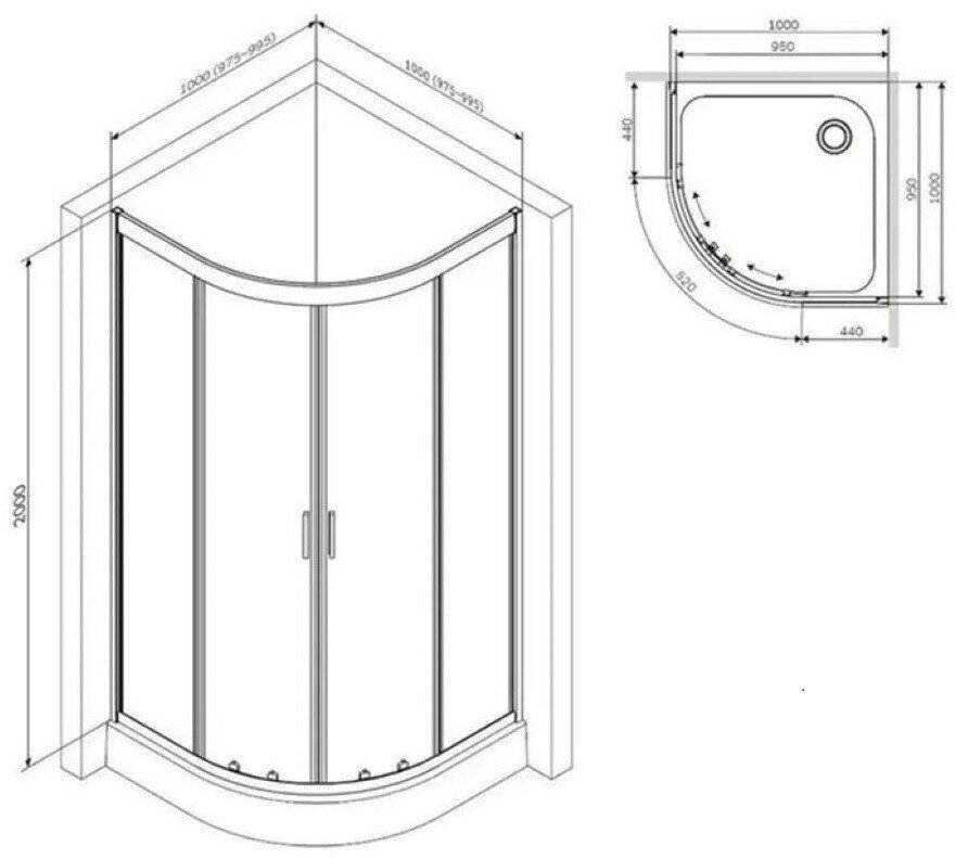 Душевой уголок Vincea city vsr-5ct9011clb, 1100 900, черный, стекло прозрачное vsr-5ct9011clb