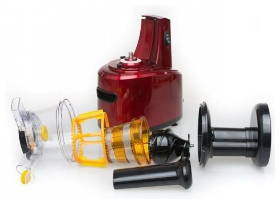 Работает она очень тихо,но не много медленнее,чем хотелось бы,заметно это на твердых овощах например моркови,т.к я закидываю понемногу,чтобы бы соковыжималка не напрягалась и дольше прослужила. Большим плюсом я считаю наличие запасных частей на сайте производителя,там есть шнек,сетка и держатель сетки,пригодится когда что нибудь затупится или выйдет из строя. Сборка разборка для мытья не занимает много времени,тут проблем не вижу. В красном цвете выглядит очень классно.В целом могу ее посоветовать. |