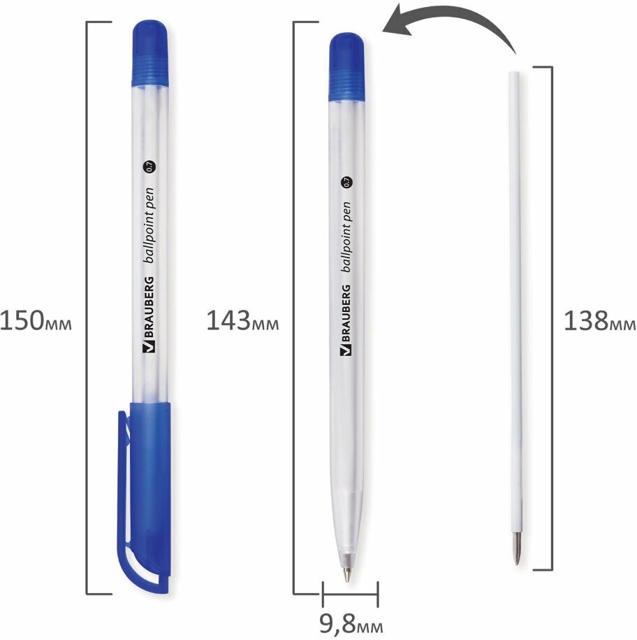 Ручка шариковая масляная BRAUBERG "Olive Pen", синяя, корпус прозрачный, 0.7 мм, линия 0.35 мм, 141476 интересное: