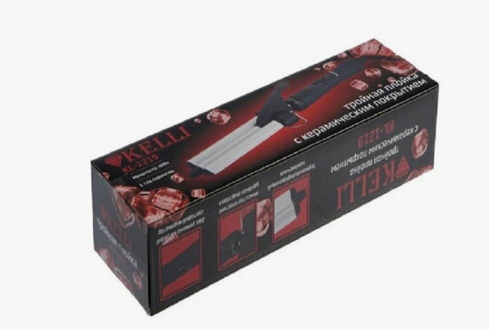 Щипцы для волос KELLI - KL-1219, 60Вт, тройные, керам.покр, 2 режима нагрева (уп-ка 24)щи