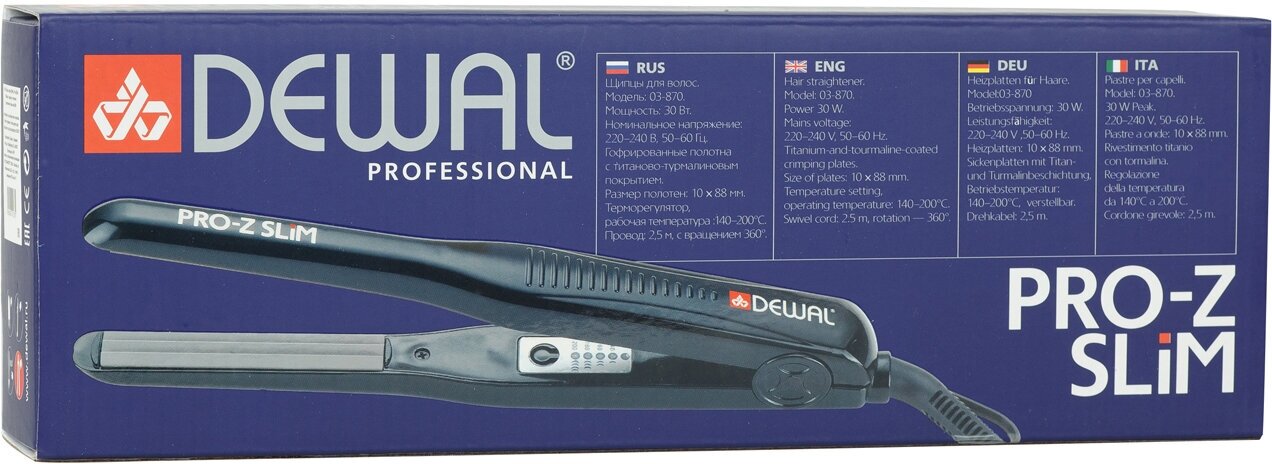 Dewal Щипцы-гофре для волос / PRO-Z Slim 03-870, 30 Вт, черный