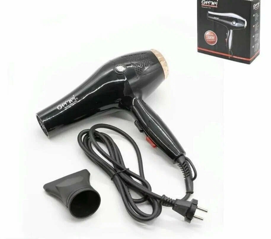 Купить Профессиональный фен Gemei GM-1766, 1 насадка, 2 скорости, 3 режима, черный