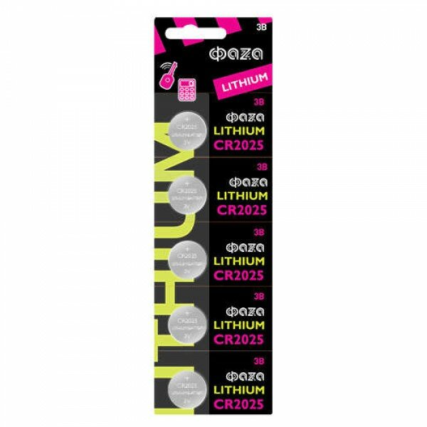 Батарейки ФАZА, CR2025 Lithium, для пультов, электронных ключей, 5шт