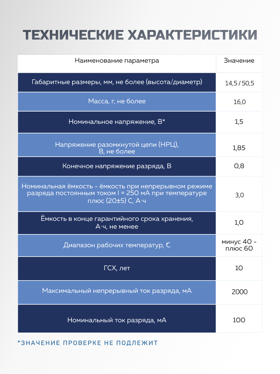 Срок годности - более 10 лет. Отсутствует саморазряд. При таких же характеристиках, в два раза дешевле импортных аналогов. Сделано в России! |