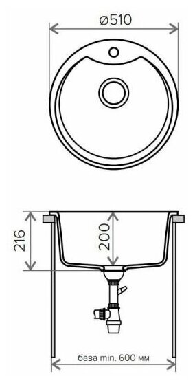 Мойка кухонная округлая Tolero Classic R-108E черный (765520)