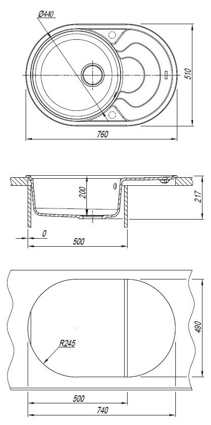 Мойка кухонная округлая Флорентина Родос 760 Жасмин (20.140.D0760.201)