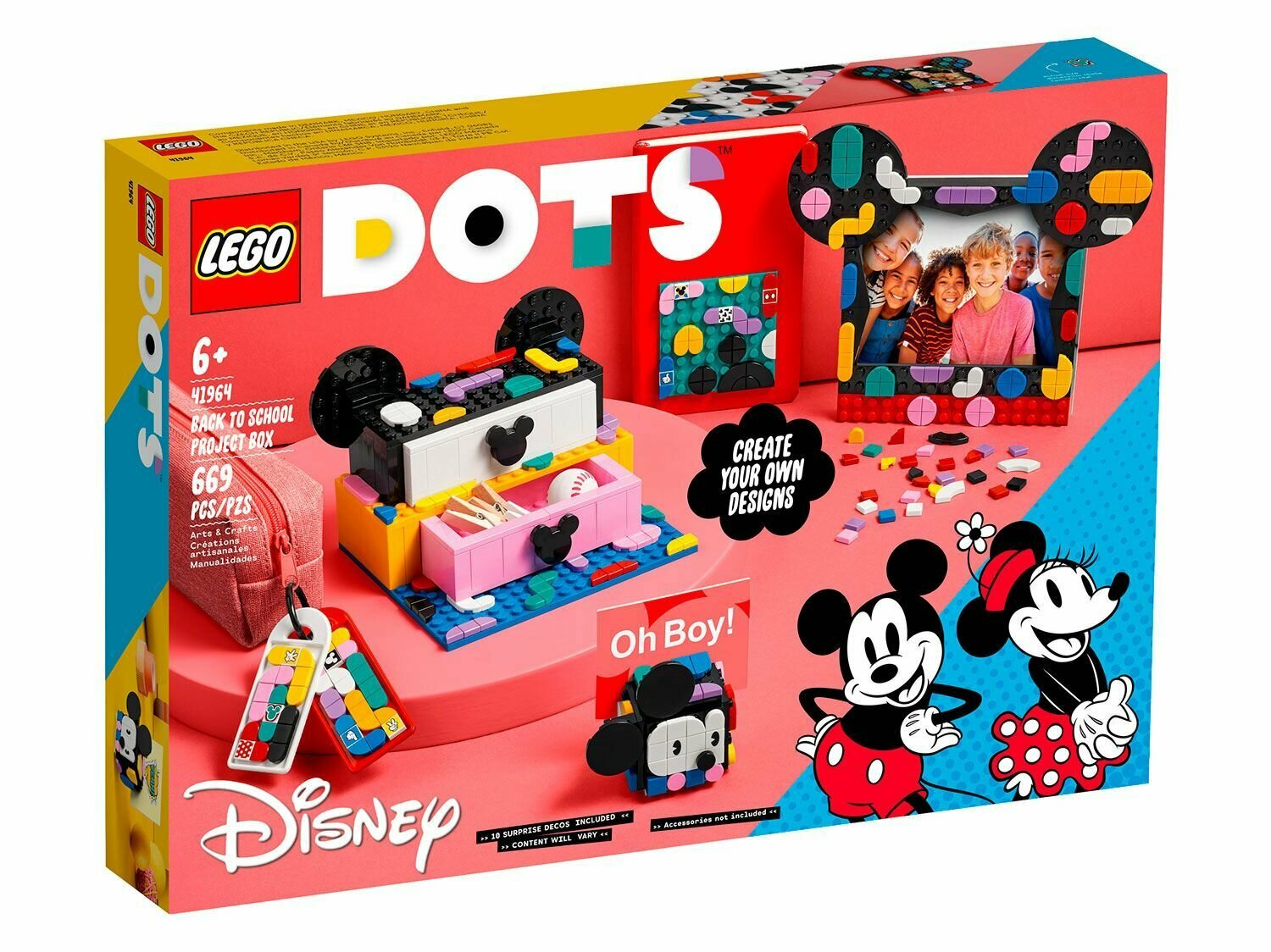 Конструктор LEGO DOTS Коробка "Снова в школу" с Микки и Минни Маусами (41964), 669 дет.