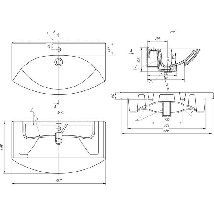 | Минусы: | Вода будет стекать по краям раковины. Не совпало отверстие со смесителем. |