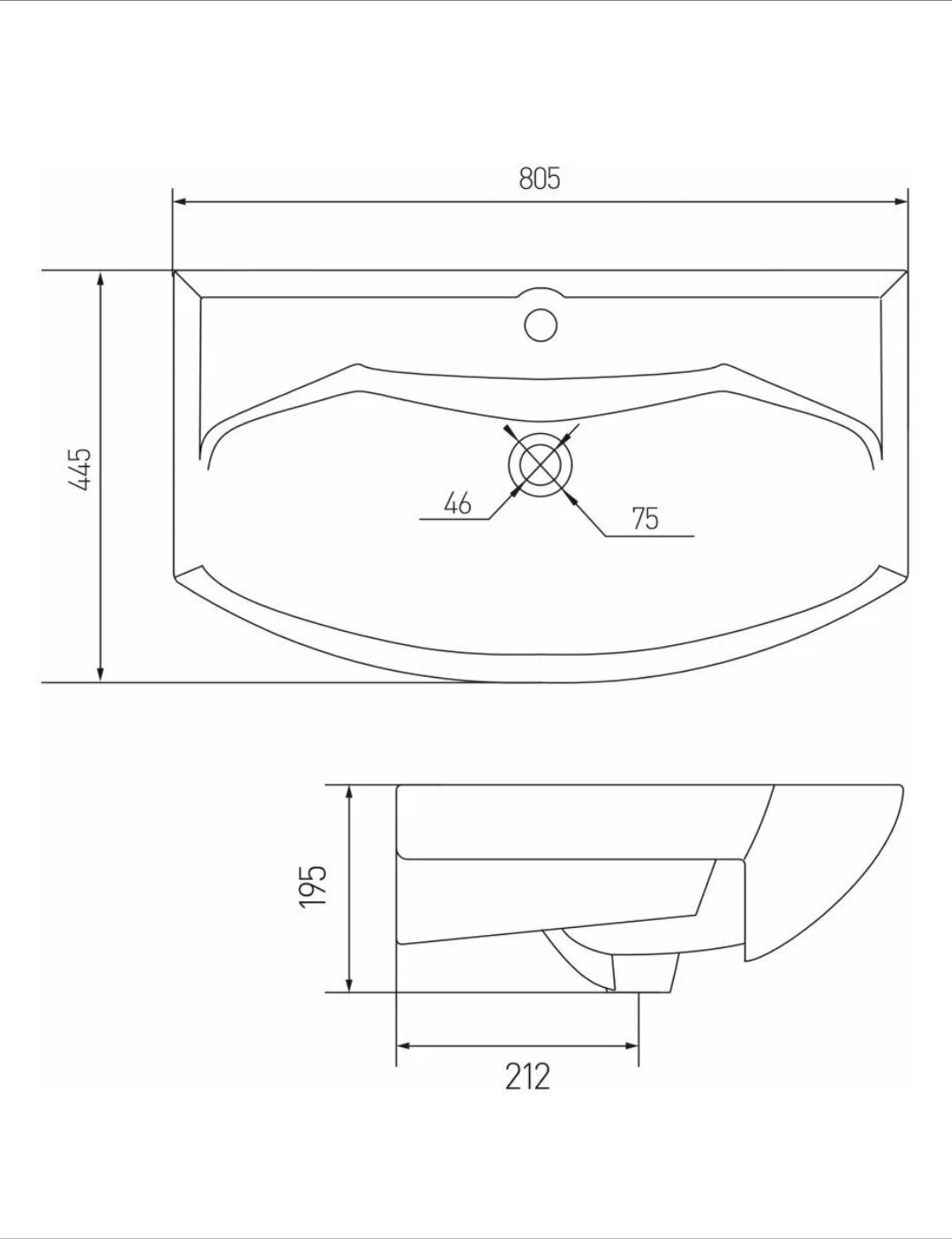 | Расположение отверстия под смеситель | в центре |