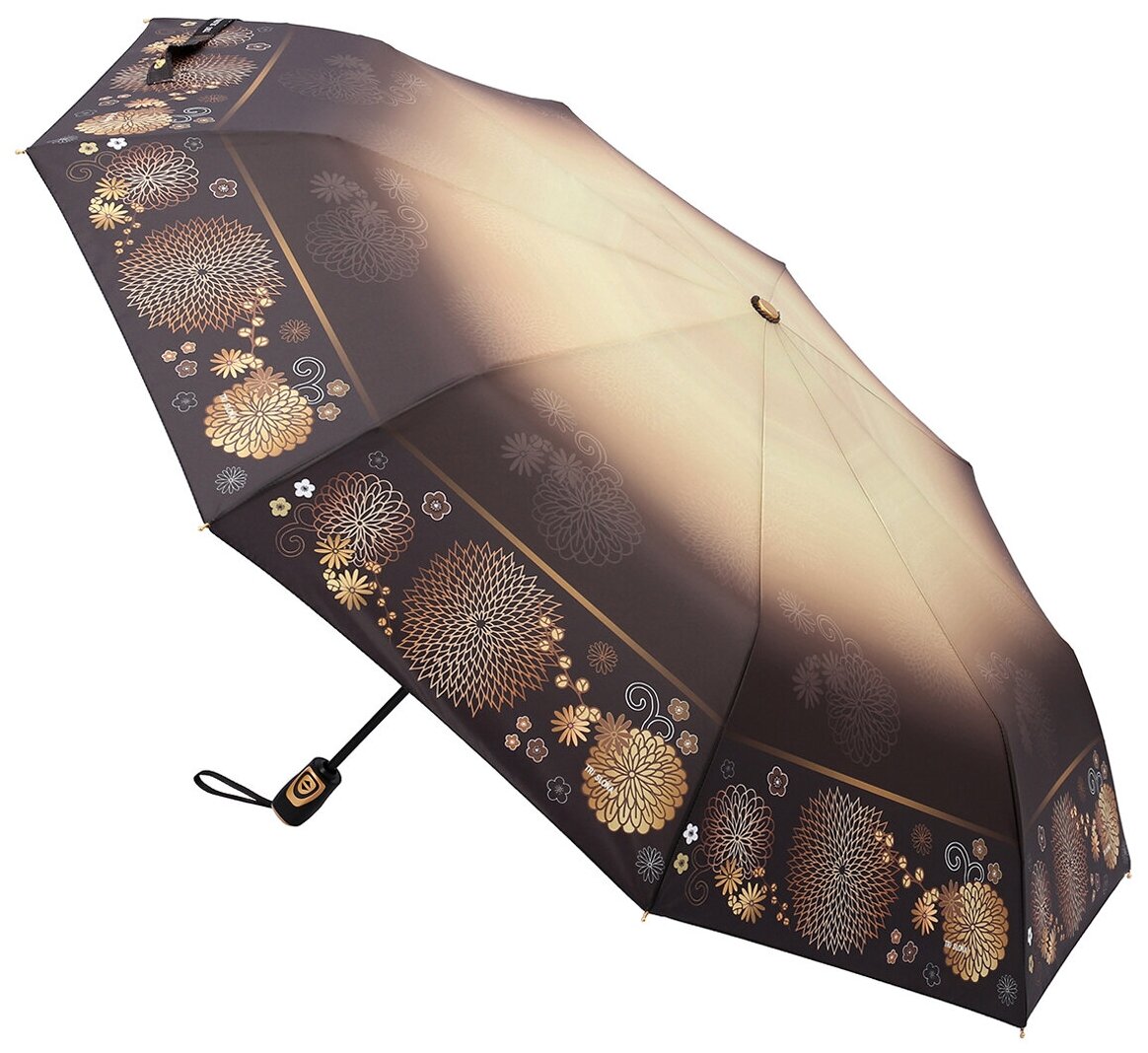 Зонт "Три Слона" женский №310-5, купол D=103 см, 10 спиц, суперавтомат бежево-черный