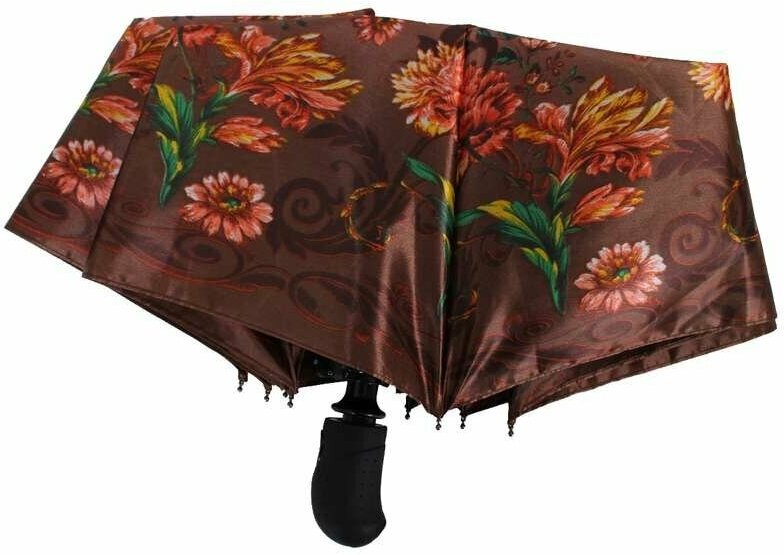 Зонт "Три Слона" женский №310-5, купол D=103 см, 10 спиц, суперавтомат бежево-черный