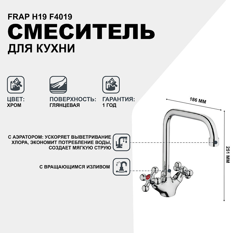 Ниже Вы можете прочитать отзывы на Смеситель для кухни FRAP H19 F4019, ознакомится с подробными характеристиками, посмотреть интересные обзоры и фотографии на Смеситель для кухни FRAP H19 F4019.