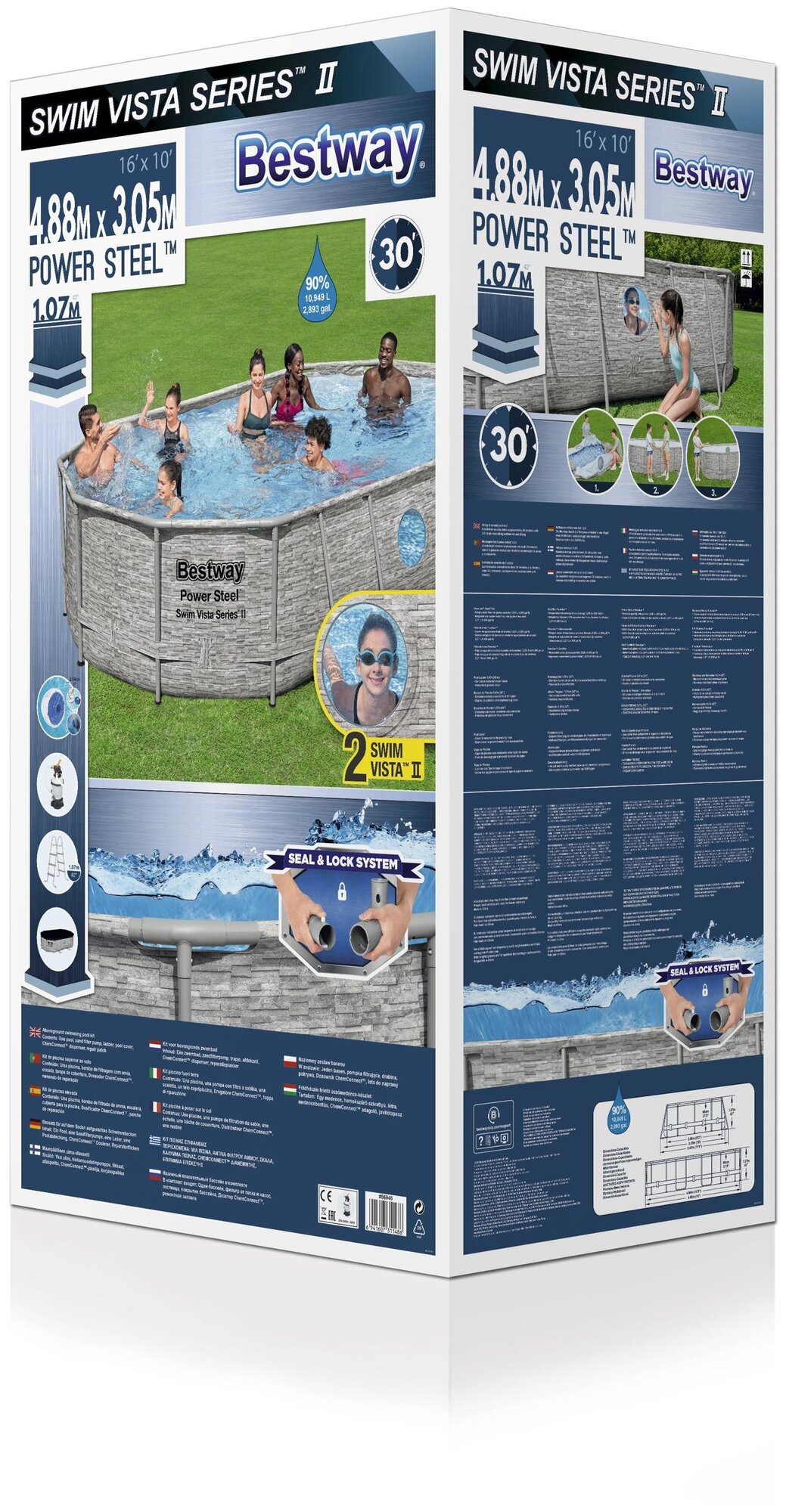 Bestway Каркасный овальный бассейн Bestway Power Steel 488*305*107 см, песочный фильтр-насос, аксессуары 56946