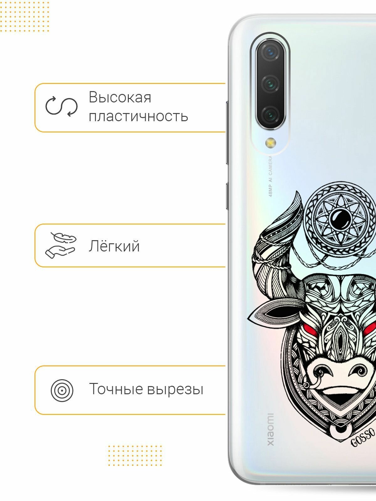 Ультратонкий силиконовый чехол-накладка для Xiaomi Mi 9 Lite / CC9 с 3D принтом "Grand Bull" интересное: