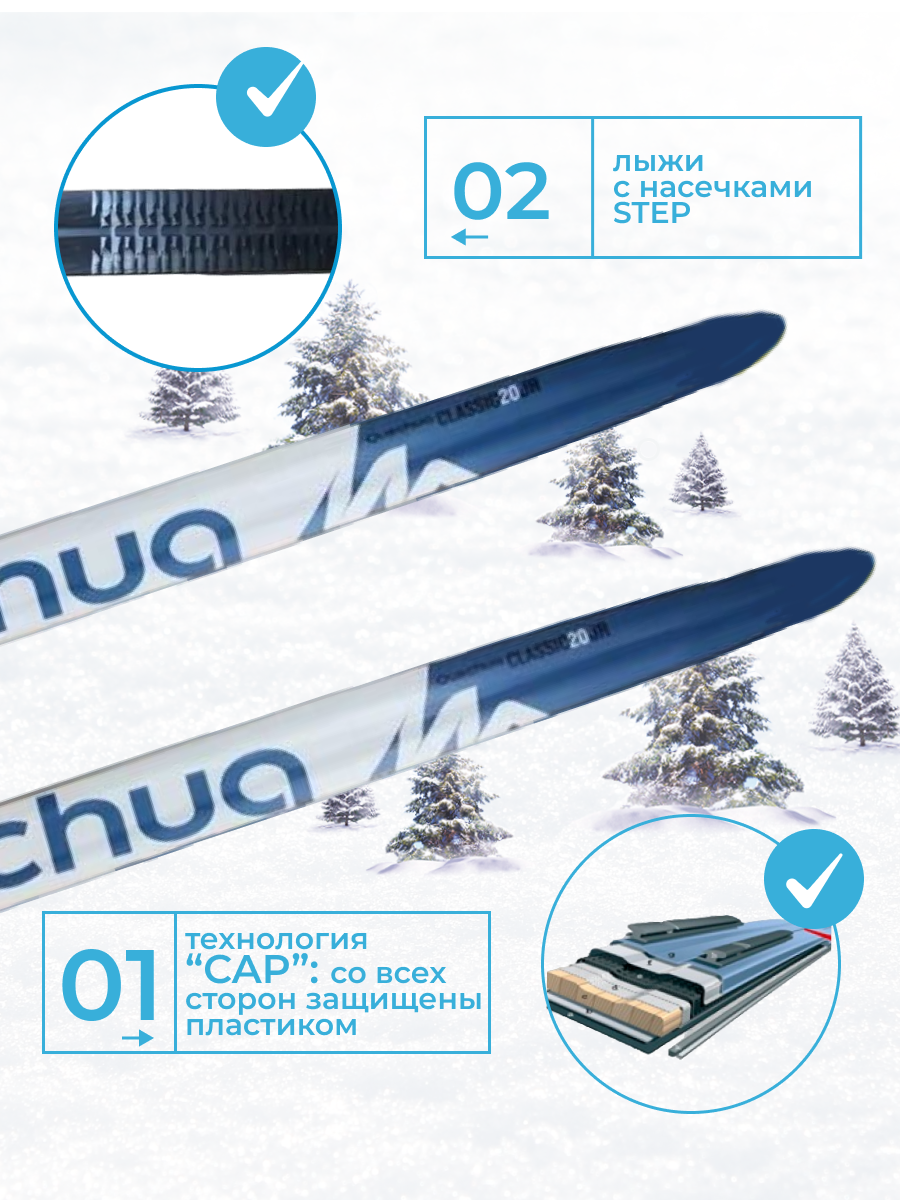 СохранитьЛыжный комплект QUECHUA / Беговые лыжи с креплением 75 мм Classic 20 STEP Blue 160 см интересное: