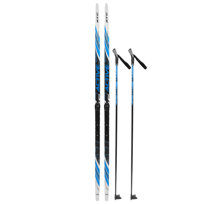Комплект лыжный: пластиковые лыжи 185 см с насечкой, стеклопластиковые палки 145 см, крепления SNS бренд ЦСТ Step, цвета интересное: