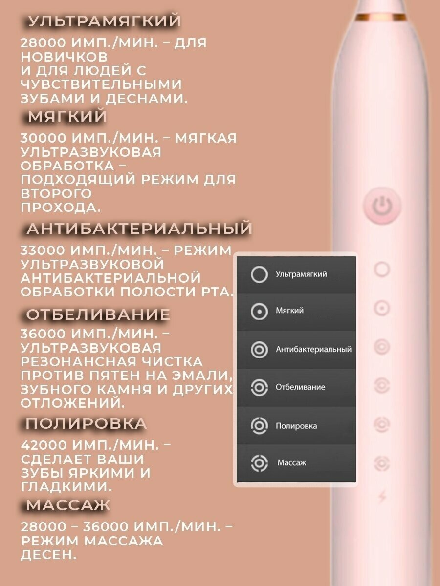 Электрическая зубная щетка X-3 Smarter, звуковая зубная щетка розовая интересное:
