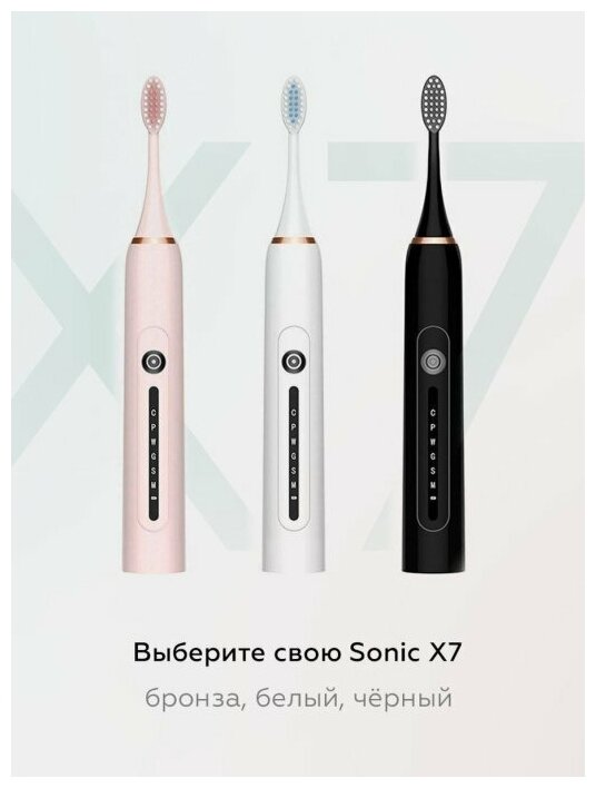 Электрическая ультразвуковая зубная щетка / 4 насадки / Зубная щетка // SONIC TOOTHBRUSH X7 розовый интересное: