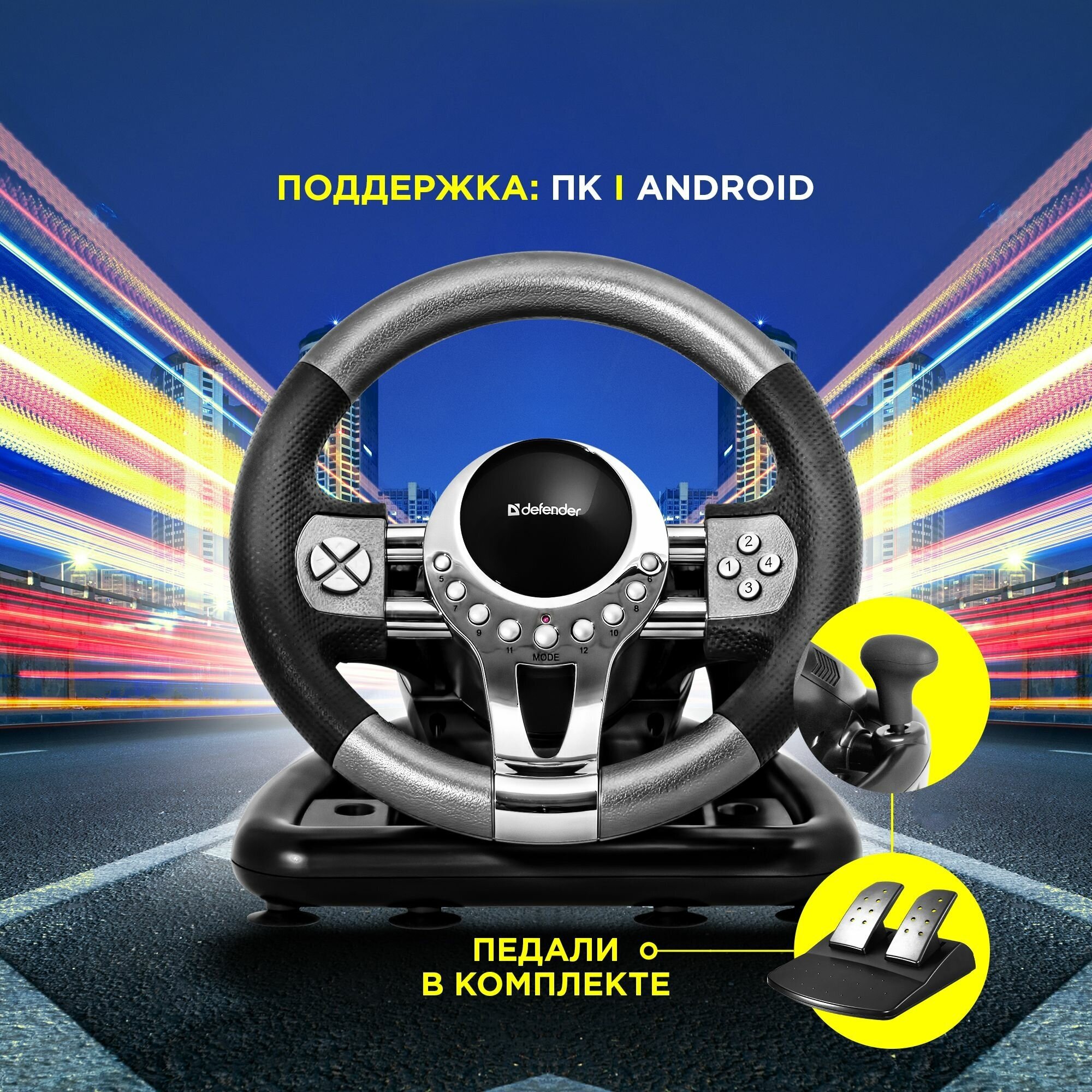 Руль DEFENDER FORSAGE GTR 12 кн., педали, рычаг передач, USB
