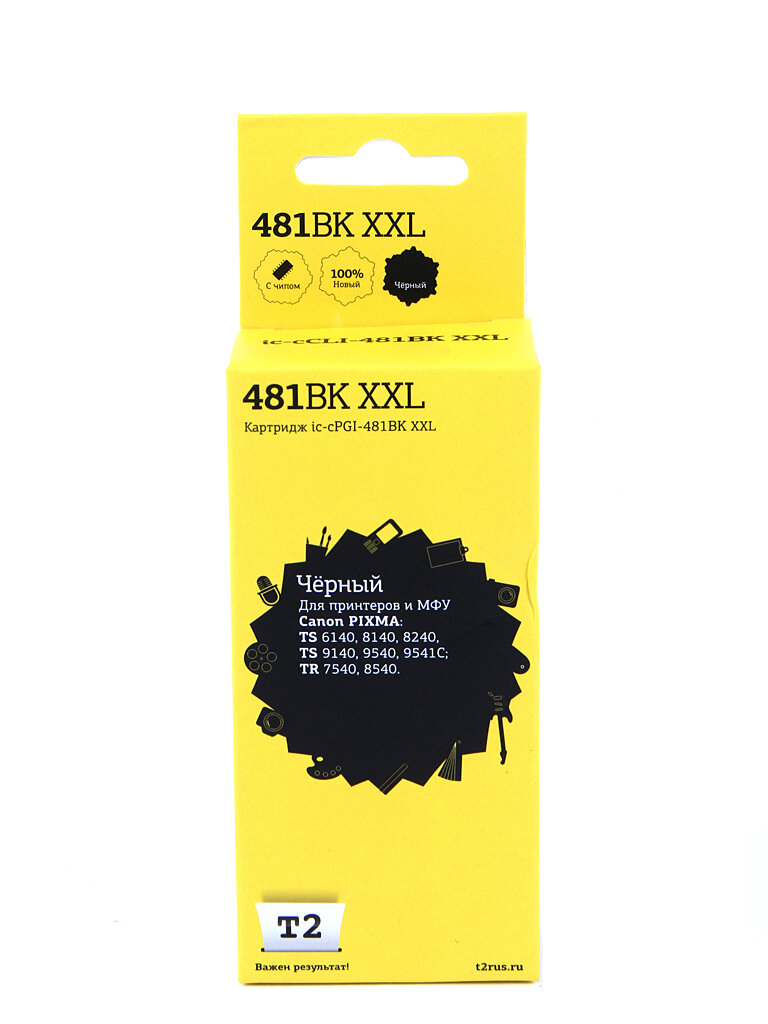 T2 Расходные материалы CLI-481BK XXL Картридж IC-CCLI-481BK XXL Canon PIXMA TS6140 704 8140 8240 9140 9540 9541C TR7540 8540, черный, с чипом