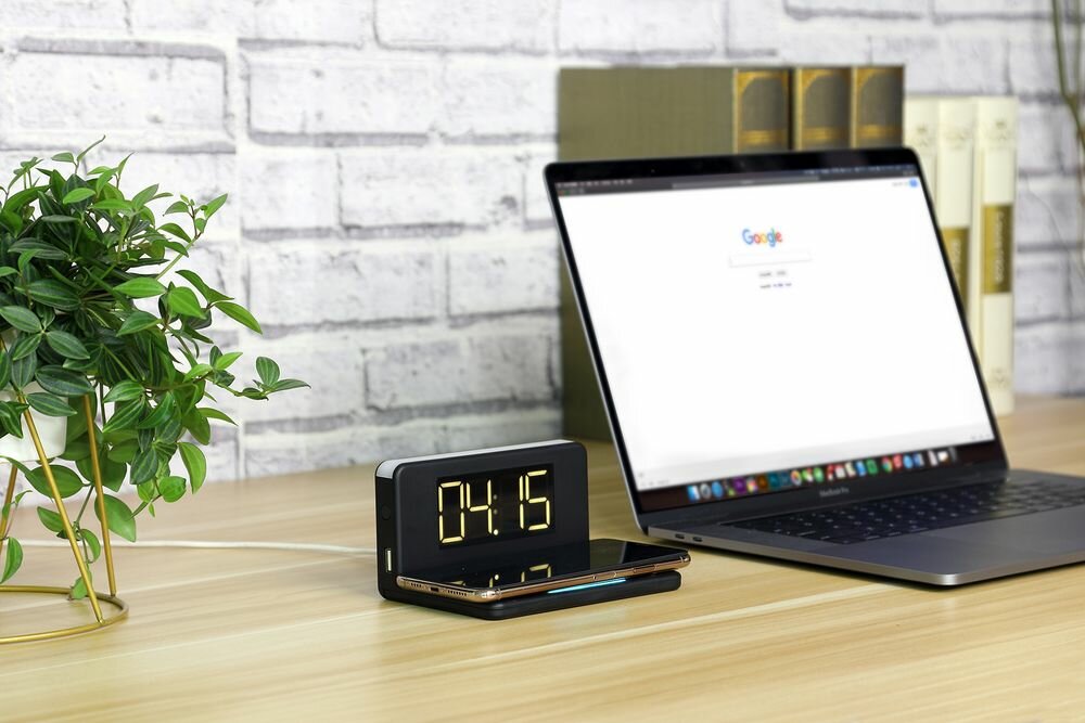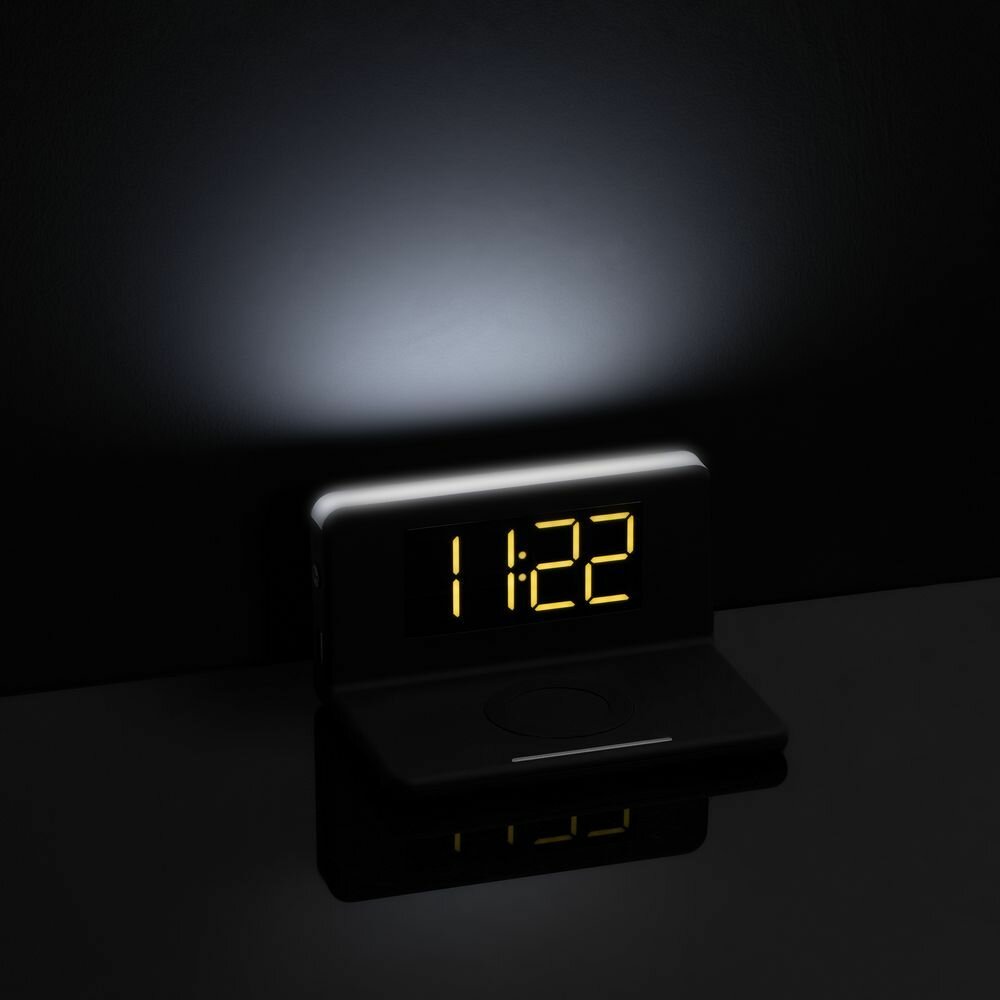 Часы настольные с беспроводным зарядным устройством зарядка для телефона Pitstop, белые подарок на 23 февраля 14 февраля мужчине парню папе