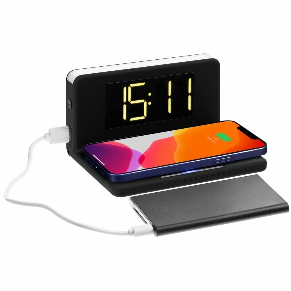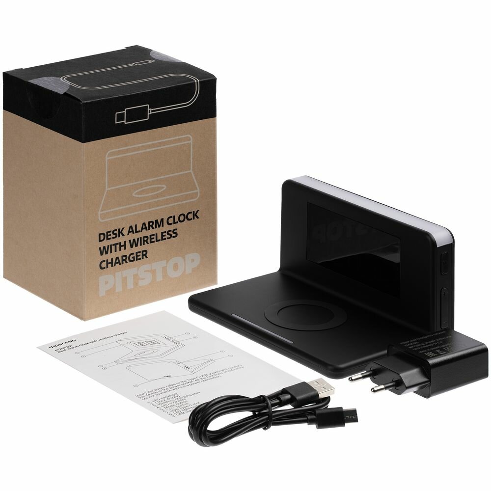 Часы настольные с беспроводным зарядным устройством Pitstop, черные интересное: