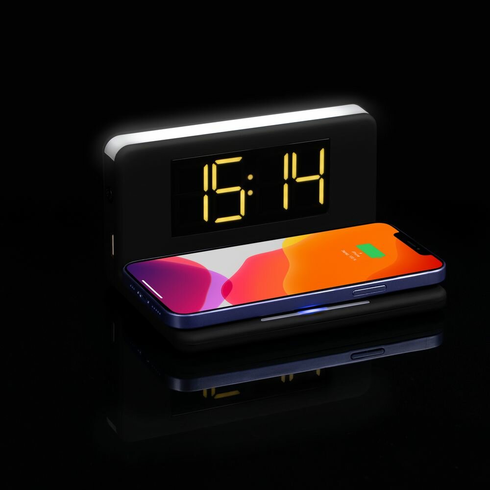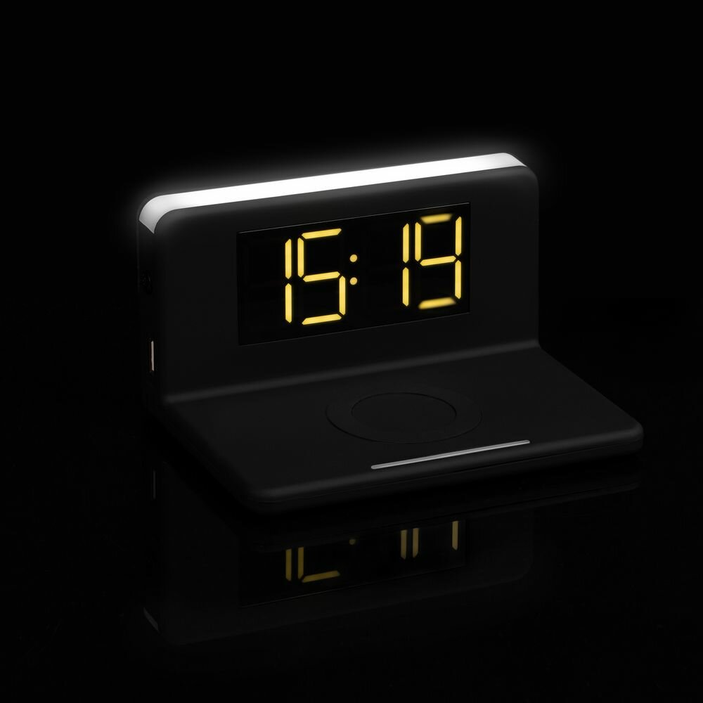 Купить Часы настольные с беспроводным зарядным устройством Pitstop, черные