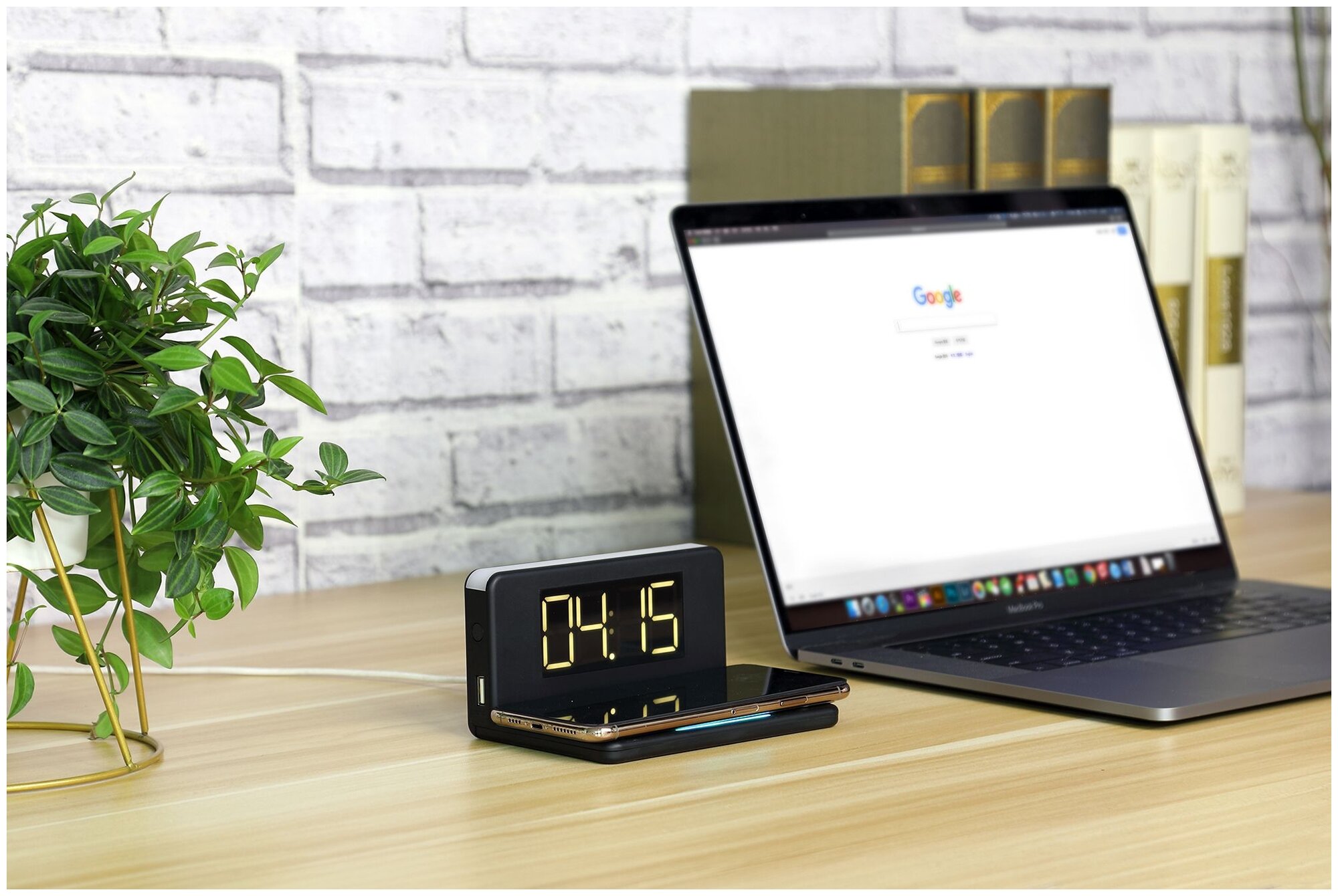 Часы настольные с беспроводным зарядным устройством зарядка для телефона Pitstop, черные подарок мужчине парню папе