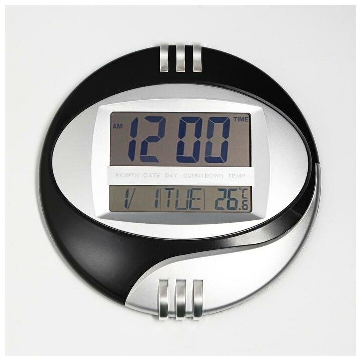 Часы-будильник электронные, настенные, настольные, 26 х 26 см, черные