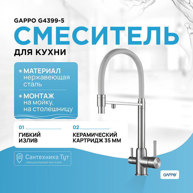 Смеситель для кухни Gappo G4399-5 c встроенным фильтром, сатин