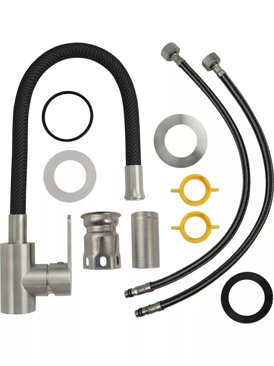 MAGNUS 9219, Смеситель для кухни из нержавеющей стали (излив гибкий темно-серый, марка стали 304)