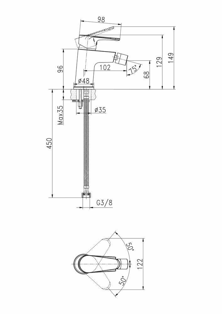 Смеситель для биде CERSANIA однорычажный А63033
