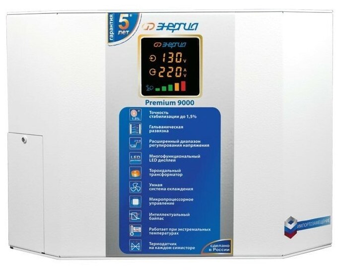 Однофазный стабилизатор напряжения Энергия Premium 9000 интересное: