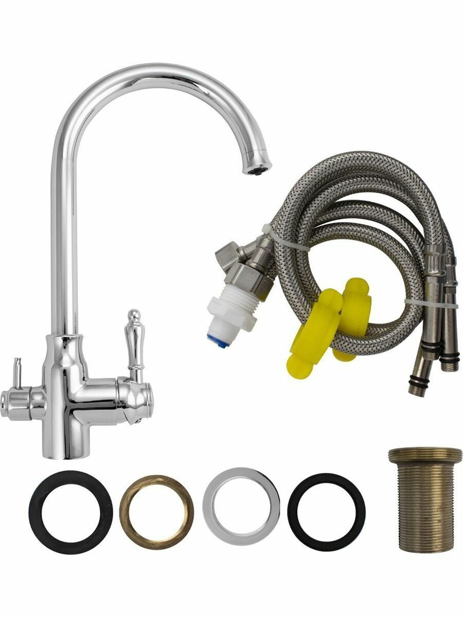 MAGNUS(8243) - Смеситель кухонный С-образный излив хром , шаровый , с двойным выпуском воды для фильтра, материал латунь, интересное: