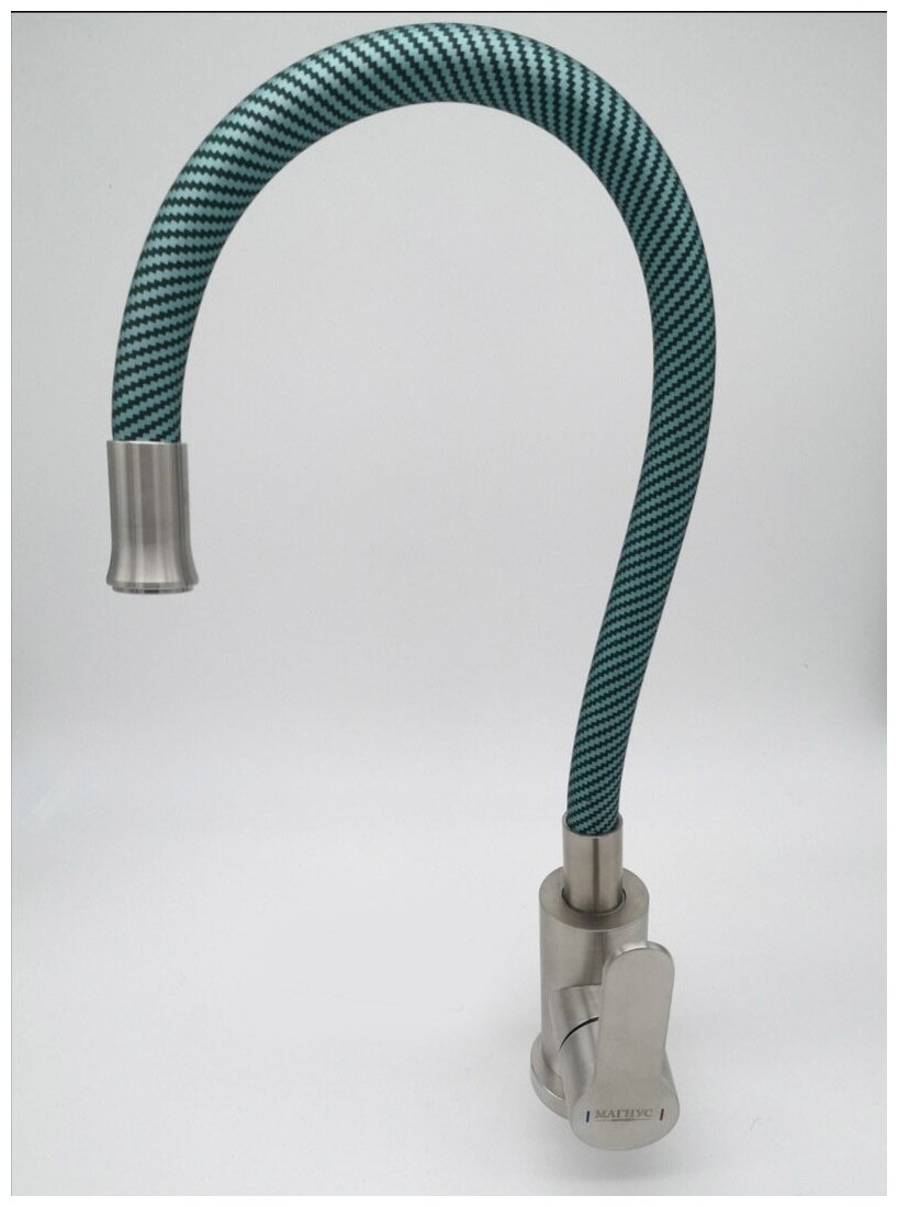 MAGNUS M-9217 Смеситель для кухни из нержавеющей стали с гибким изливом зелёного (салатового) цвета интересное:
