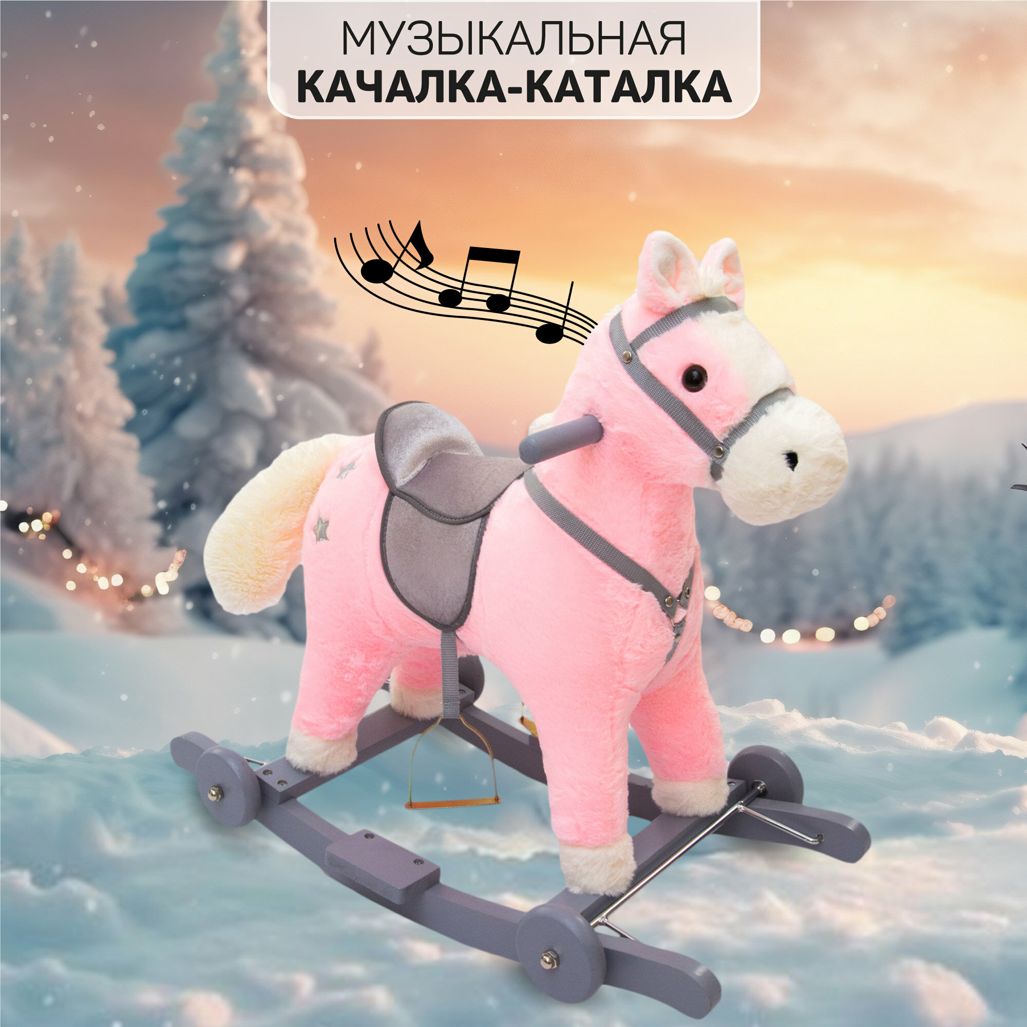 Купить Лошадка каталка-качалка AMAROBABY (Prime), с колесами, розовый, 63x35x60 см