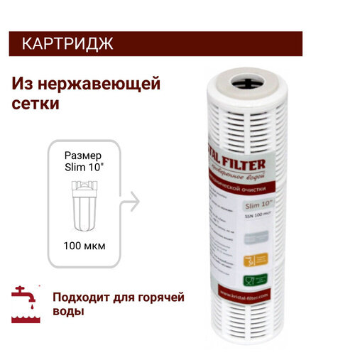 Картридж Kristal Filter Slim 10" SSN 100mcr, сетка нержавейка интересное: