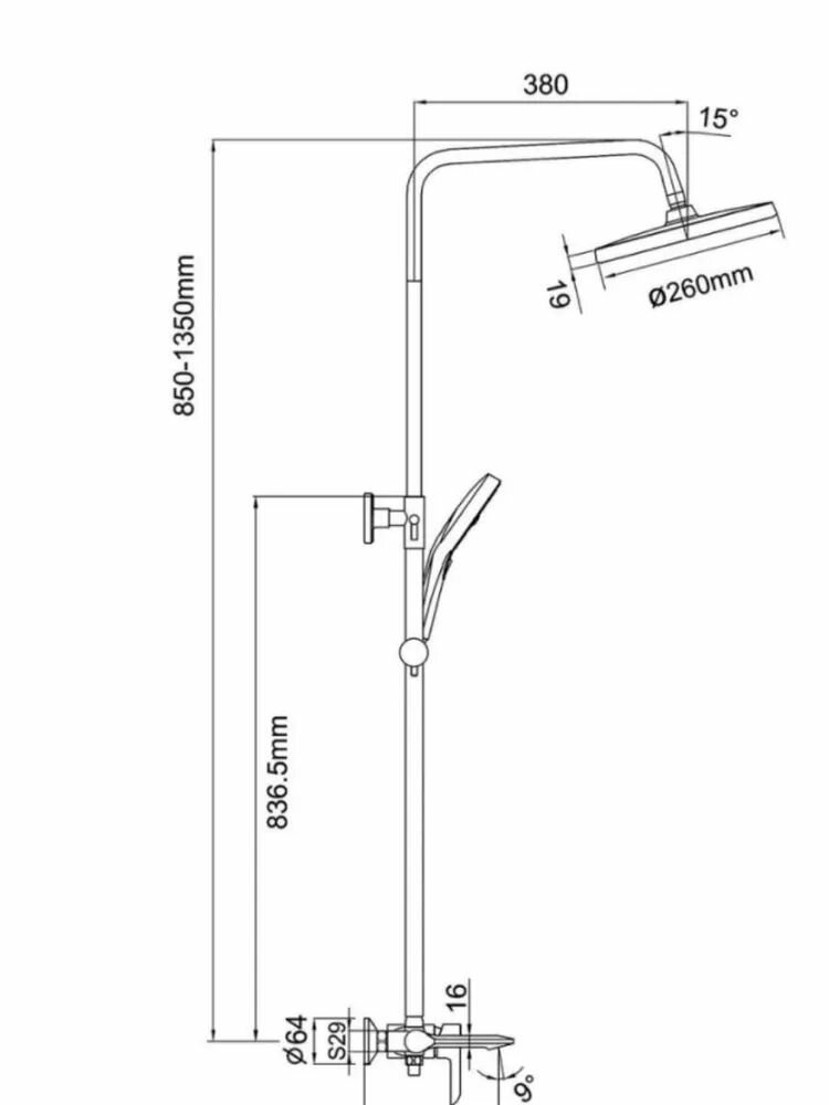 | Особенности | держатель душевой лейки / защита от скручивания / поворотный излив / регулируемый верхний душ |