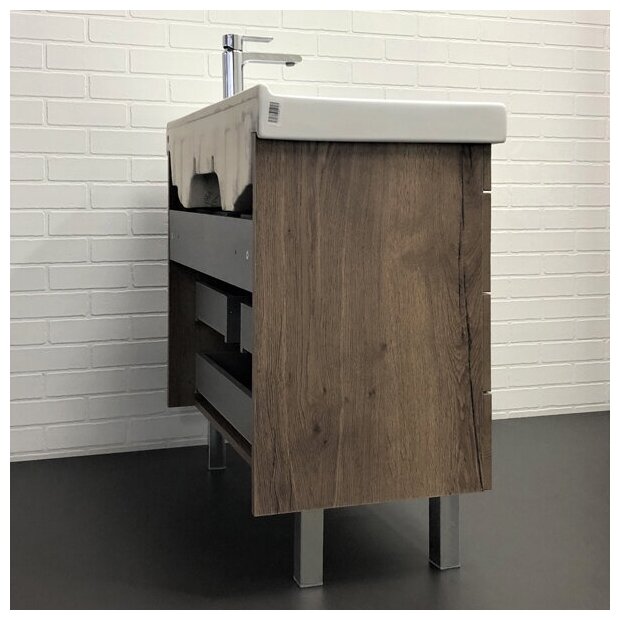 Тумба-умывальник Comforty Никосия-80Н цвет дуб темный, с раковиной Fest 80 F01 Comforty 7729820 .