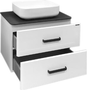 Купить Тумба-умывальник COMFORTY Амстердам-75 белая с черной столешницей текстура брашированная древесина, с раковиной COMFORTY T-Y9378 (00-00001388)