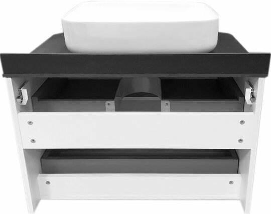 Тумба-умывальник COMFORTY Амстердам-75 белая с черной столешницей текстура брашированная древесина, с раковиной COMFORTY T-Y9378 (00-00001388) интересное: