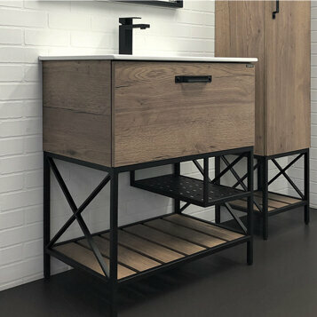 Купить Тумба с раковиной Comforty Бредфорд 75 дуб темный с раковиной Comforty 75E