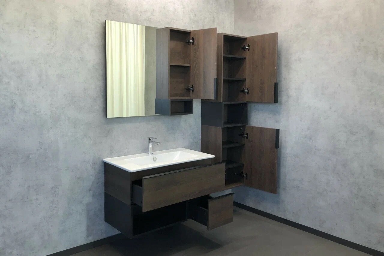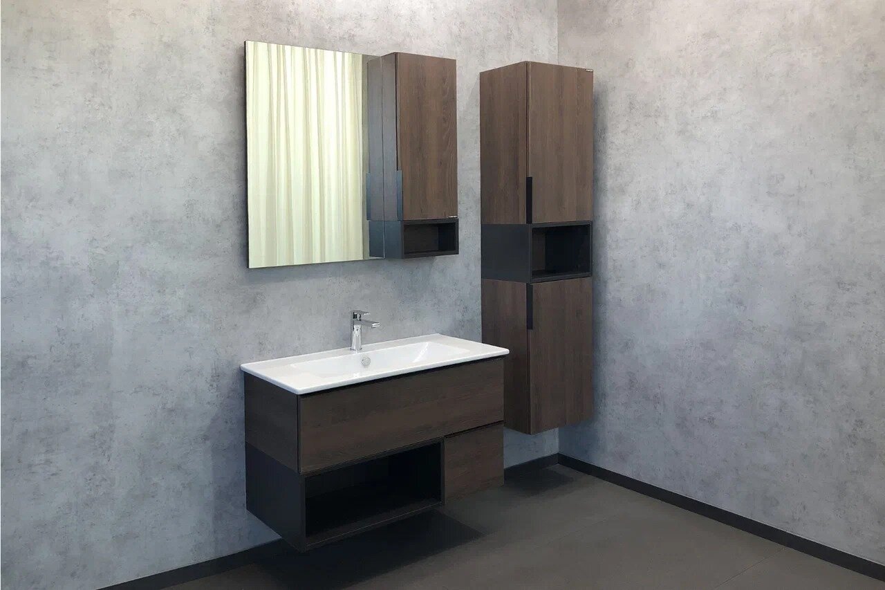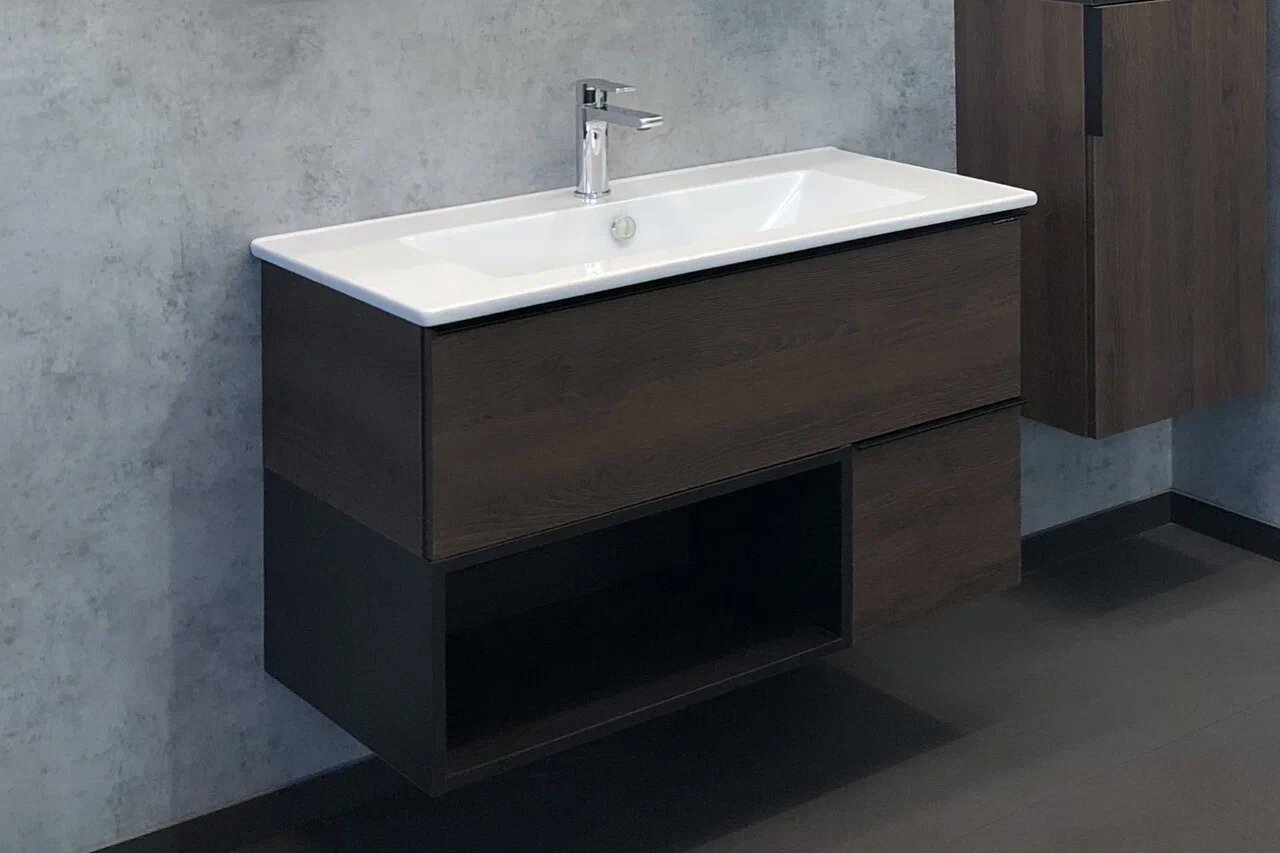 Comforty Тумба Франкфурт-90 дуб шоколадно-коричневый с раковиной Quadro 90 интересное: