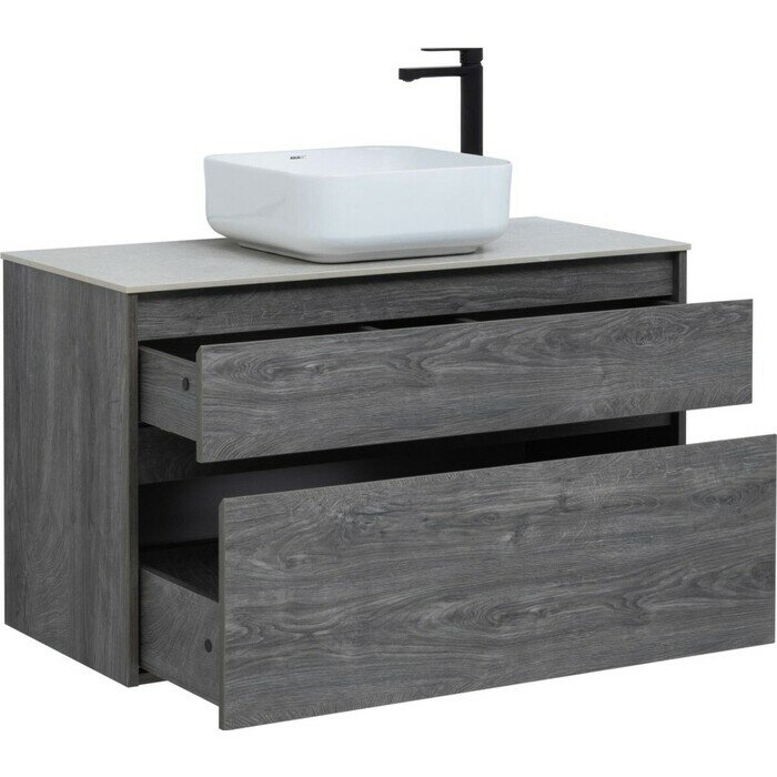 Тумба под раковину Aquanet Nova Lite 100 два ящика, дуб рошелье/серая (242582)