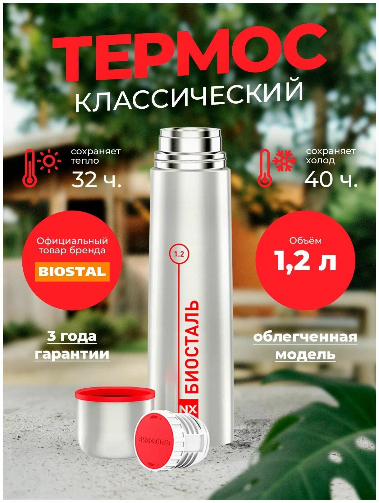 Термос классический Вакуумный с узкой горловиной, Биосталь/Biostal (1.2),NX-1200 интересное: