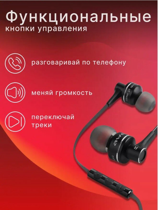 Наушники Awei ES-10TY черные с микрофоном и сменными насадками интересное: